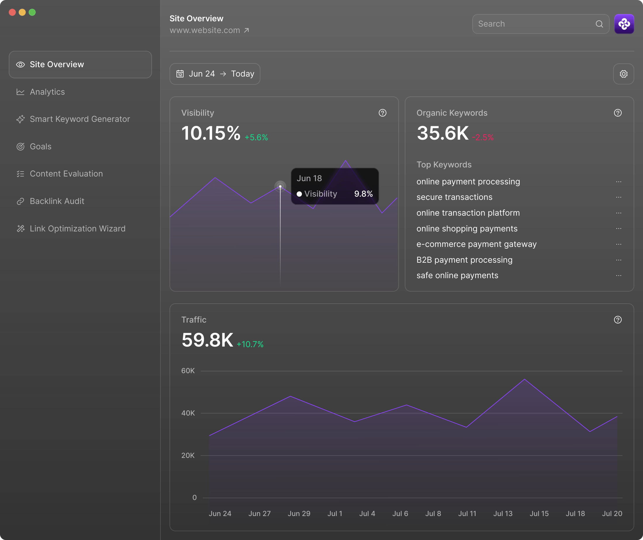 Harness the power of AI, making search engine optimization intuitive and effective for all skill levels.